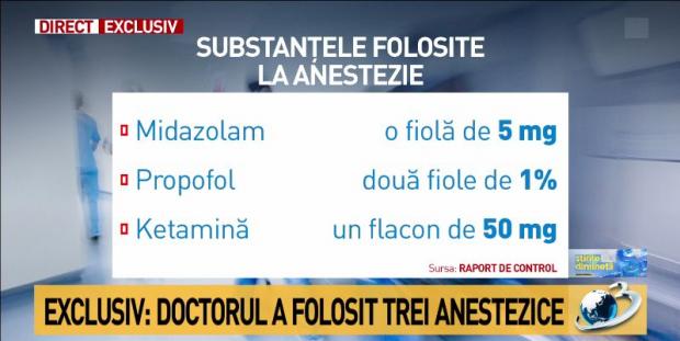 Documentul amintit confirmă faptul că această clinică nu avea dreptul să facă anestezie generală, nu era autorizată pentru o secţie de anestezie şi terapie intensivă, aşa cum se întâmplă în cazul unei anestezii generale: există un compartiment special, un salon de trezire, aparatură, ventilaţie, defribrilator, o persoană care trebuie să stea lângă pacientul anesteziat.