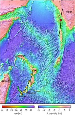Fragmentul continental, denumit Mauritia, s-a desprins din blocul continental sudic în urmă cu 60 de milioane de ani şi a rămas ascuns sub mase colosale de lavă.