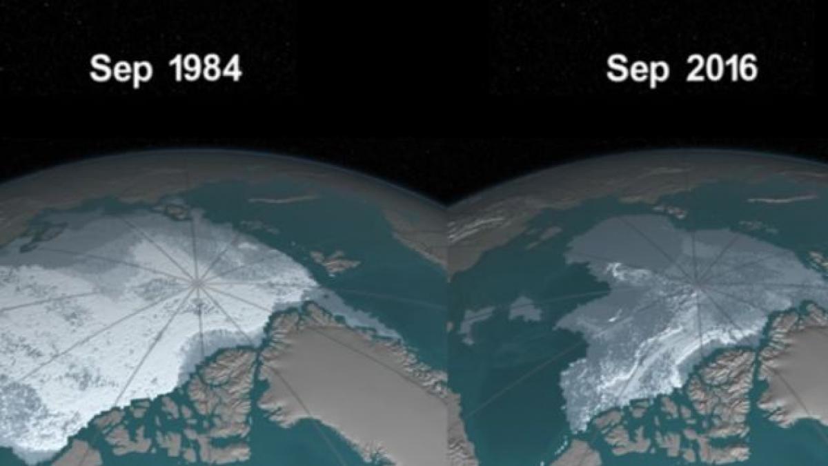 Cercetătorii NASA au realizat un filmuleț impresionant, care arată în doar câteva minute cât de mult și cât de repede s-a topit calota glaciară din zona Arctică.
