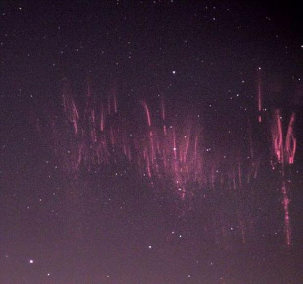 În timpul unui zbor deasupra oraşului Vivaro, din Italia, un pilot a surprins aceste imagini cu un cerul roşu brăzdat de lumini colorate - analizate de astronomi, imaginile au scos la iveală un fenomen celest extrem de rar, care nu a fost până acum vizibil ochiului uman.