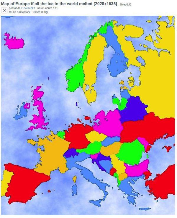 Folosindu-se de datele furnizate de cei de la National Geographic, un utilizator al reţelei reddit a construit o hartă a Europei viitorului sumbru preconizat. Oraşe mari precum Londra, Veneţia, Bruxelles, Amsterdam, Copenhaga, Stockholm, Istanbul, Helsinki şi Sankt Petersburg ar dispărea, iar ţări precum Olanda şi mare parte din Danemarca ar fi acoperite de apă. Nici România nu ar fi ocolită de probleme, sud-estul țării fiind complet inundat.