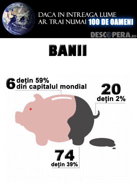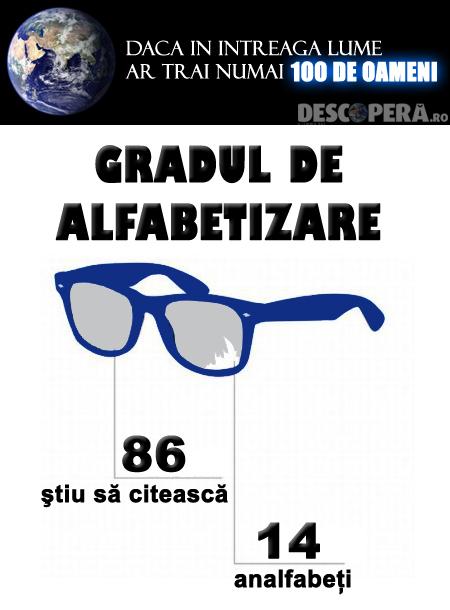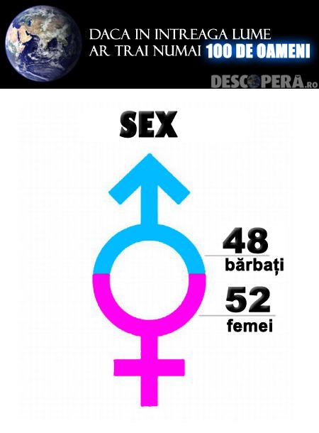Descoperă.ro prezintă o statistică extrem de interesantă care pleacă de la următoarea întrebare: Cum ar arata lumea, dacă pe Pământ ar trăi numai 100 de oameni?". Deși nu ne aduce imaginea totală a lumii de astăzi, ne oferă niște frânturi de realitate: