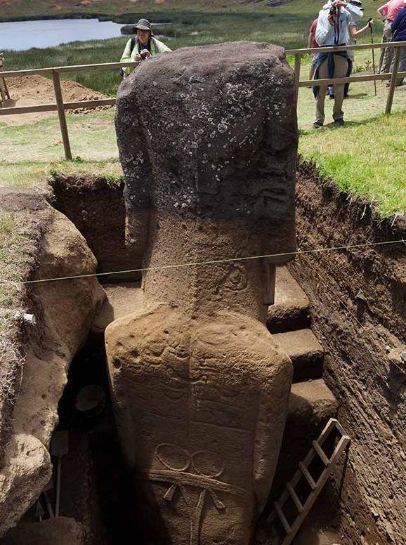 Insula Paştelui, una dintre cele mai izolate insule locuite din lume, se află la peste 3000 de kilometri depărtare de Chile. Statuile, denumite Moai, au fost realizate de băştinaşii numiţi Rapu Nai undeva între anii 1250 şi 1500 d. Hr. Cea mai înaltă dintre cele 887 de statui măsoara peste 9 metri şi cântăreşte 82 de tone. O alta, dacă ar fi fost terminată, ar fi măsurat peste 21 de metri şi ar fi cântărit 270 de tone. Chipurile reprezintă strămoşi ai populaţiei de pe insulă, întruchipaţi ca zeităţi.