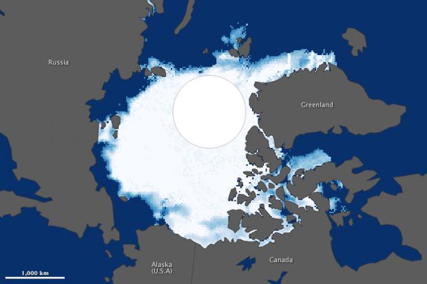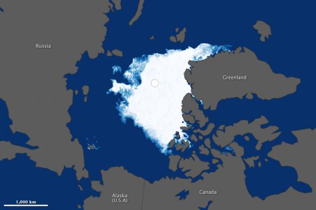 Institutul Naţional de Zăpadă şi Gheaţă cât şi NASA, au anunţat că în luna septembrie a anului 2012, întinderea minima a gheţii de la Polul Nord era de 3.41 milioane de kilometri pătraţi, faţă de 6.70 milioane de kilometri pătraţi, cât era înainte între 1979 şi 2000.