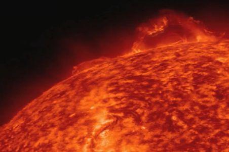 "Materialul roşu care se vede strălucind este plasmă, un gaz fierbinte constituit din hidrogen şi heliu cu încărcătură electrică. (...) Proeminenţa de plasmă curge pe o structură de câmpuri magnetice generate de dinamul intern al Soarelui. Erupţia unei proeminenţe apare atunci când o structură devine instabilă şi explodează către exterior", au explicat experţii de la NASA Goddard Space Flight Center.