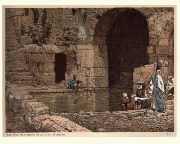 Scena când orbul se spală în bazinul Siloam. Foto: Getty Images