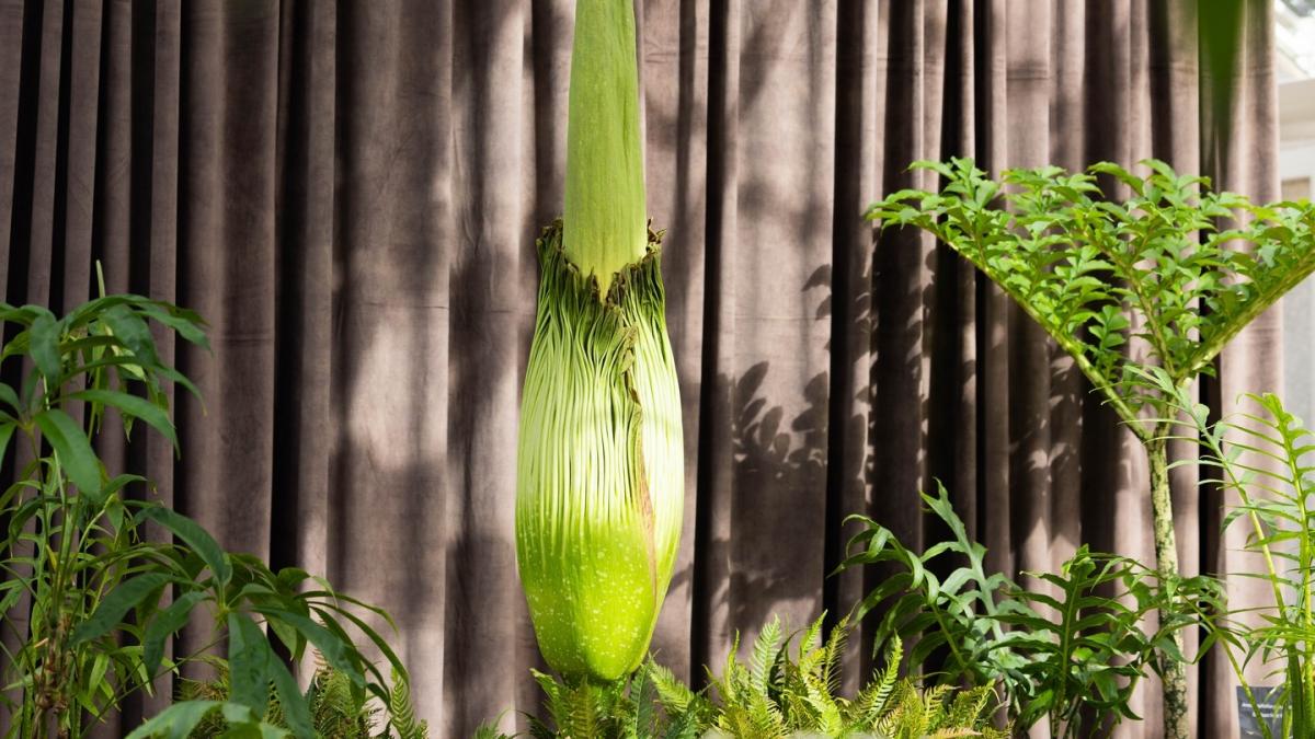 Deocamdată, „floarea cadavru” nu dă semne de mișcare. Stă silențioasă și înaltă în fața unei perdele maro. Ocazional, în cadru apare câte un vizitator care își face un selfie cu planta.