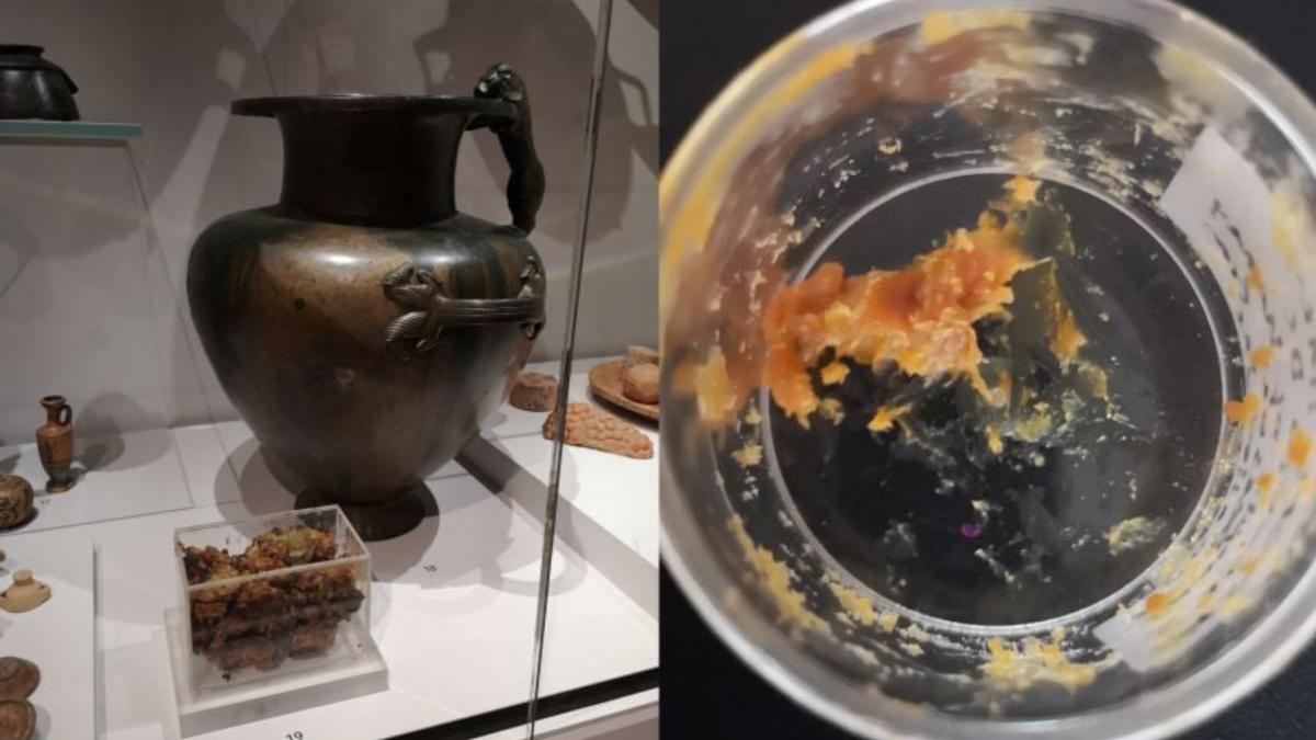 Globurile de substanță lipicioasă descoperite pe fundul unor vase de bronz vechi de 2.500 de ani din sudul Italiei au fost identificate chimic, punând capăt unei dezbateri arheologice care dura de 70 de ani, potrivit Live Science.