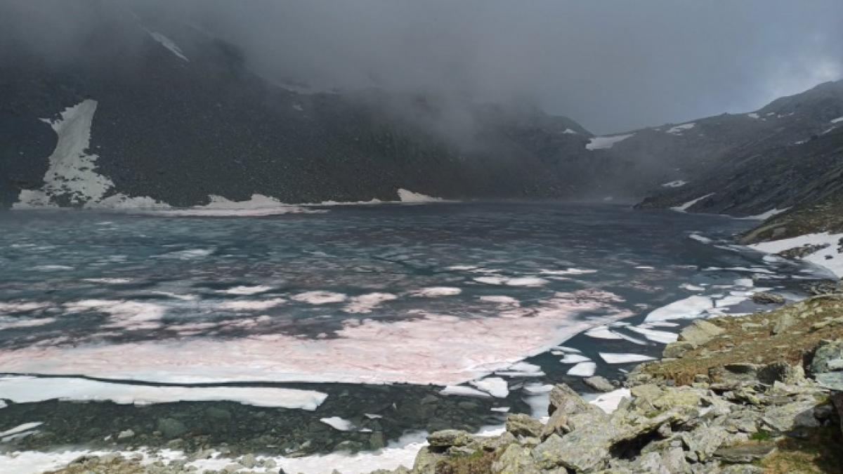 Stratul de gheată plutitoare de pe Lacul Grande di Viso, din provincia Cuneo, Italia a căpătat o culoare roşiatică, iar fenomenul curios a fost observat în ultimele zile și este studiat în prezent de personalul Parcului Monviso. Culoarea roşie a zăpezii din zona Lacului Grande, în Alpii italieni, ar fi efectul reflexiei şi al nervurilor cauzate de o algă.