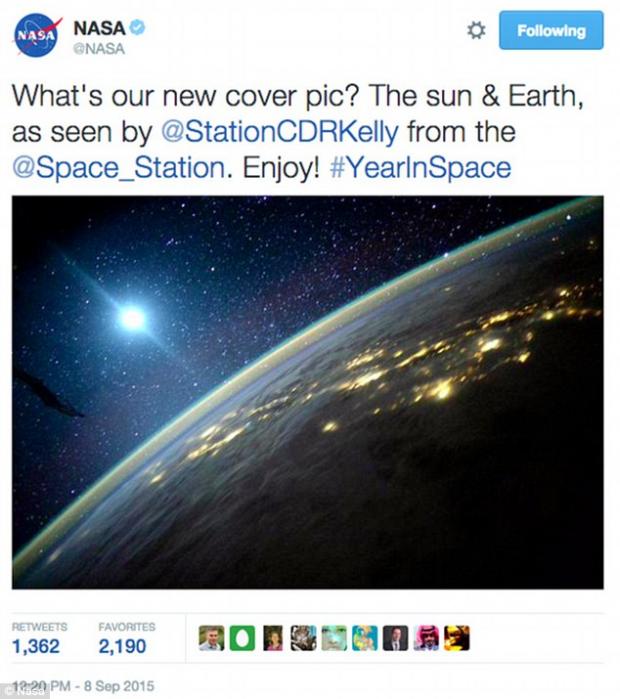 NASA a publicat pe contul ei de Twitter o fotografie spectaculoasă, însoţită de un text explicativ, care afirma că imaginea respectivă reprezintă Soarele şi Terra.