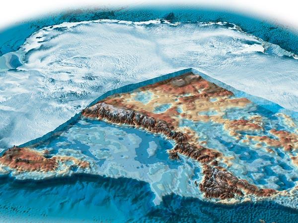 Specialiştii de la NASA au îndepărtat banchiza de gheaţă din Antarctica! Este vorba de o simulare grafică pe calculator, care prezintă continentul de la Polul Sud aşa cum ar arăta fără stratul de gheaţă care-l acoperă.