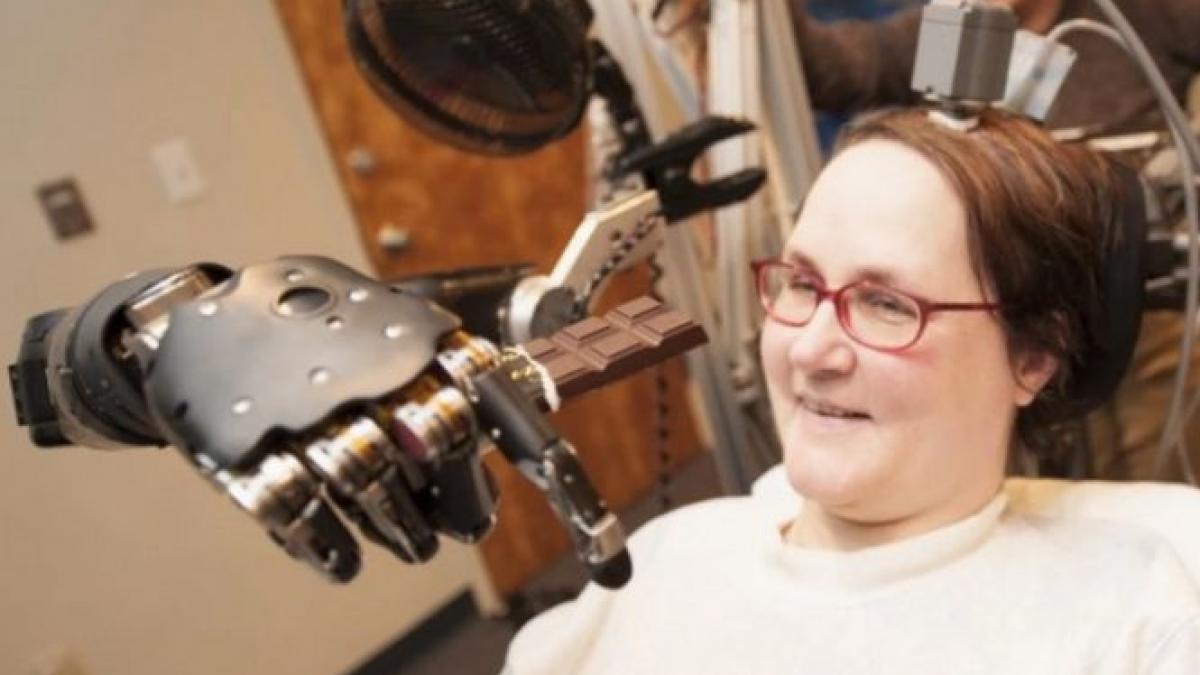 Femeia a paralizat complet în 2003 din cauza unei boli neurodegenerative. Oamenii de ştiinţă i-au montat doi electrozi pe cortexul motor, acea parte a creierului care controlează mişcările membrelor superioare.