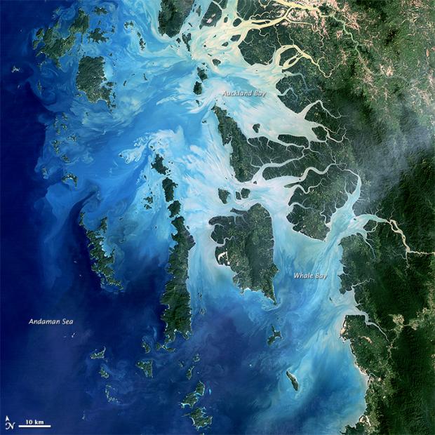 Imaginea de mai jos, ce prezintă partea centrală a arhipelagului Mergui din spaţiu, a fost realizată de satelitul Landsat.