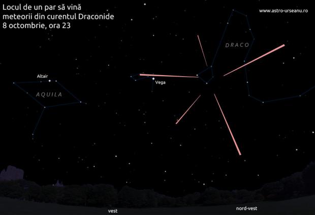 Potrivit Observatorului Astronomic din Bucureşti calculele arată că în intervalul orar 22:00 şi 3:00 dimineaţa se vor putea observa pe cer mai multe stele căzătoare care aparţin constelaţiei Draco, aflată nu departe de strălucitoarea stea Vega.