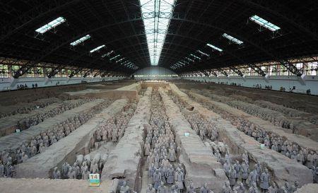 Complexul funerar se întinde pe zeci de kilometri pătraţi şi doar într-un singur sector al său au fost îngropaţi 7.000 de soldaţi de teracotă în mărime naturală, cu arme şi cai, gata de război.