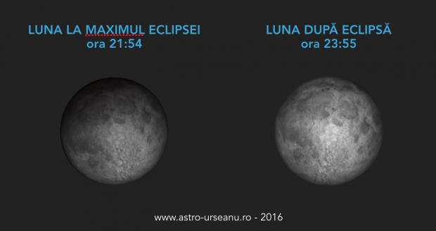 La eclipsa din 16 septembrie Luna nu va intra în umbra Pământului, ci în penumbră, ceea ce înseamnă că discul său nu se va întuneca prea mult. Chiar dacă nu vom avea o Lună întunecată (roșie sau cărămizie) tot vom putea vedea, în preajma maximului eclipsei, cum partea de sus a discului selenar va fi mai închisă la culoare decât partea de jos.
