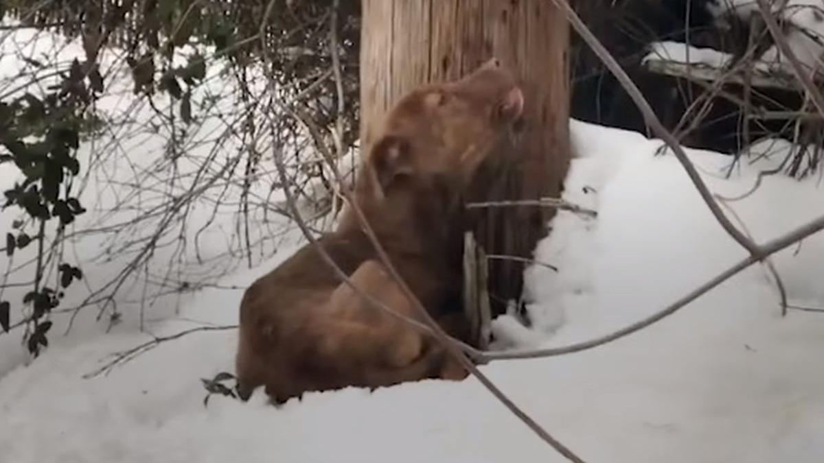 O tânără a fost impresionată de lătratul bietului animal care stătea în zăpadă și urla disperat din cauza frigului pe care îl simțea tot mai puternic.