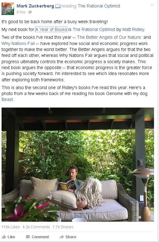 Mark Zuckerberg s-a declarat de multe ori un împătimit al cititului, subiectele cărţilor sale fiind dintre cele mai variate.