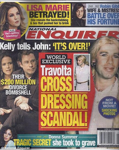 Actorul apare în prim-plan în revista National Enquirer, dar într-o imagine penibilă. Vedeta de 58 de ani poartă o rochie albă, centură maro, perucă, cercei şi colier. Chiar şi un sutien este vizibil pe sub haina de tricot. El are faţa acoperită de machiaj, inclusiv dermatograf negru, şi ruj roz perlat.