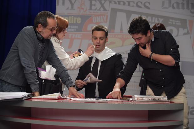 Vedeta Antenei 3, Mircea Badea, joacă rolul care l-a consacrat și în viața reală, cel de prezentator de televiziune.