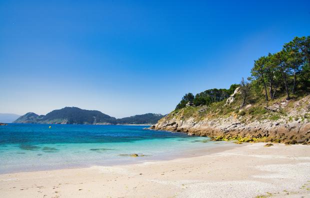 „O scurtă călătorie cu feribotul din Vigo (numărul de vizitatori zilnici și cei care rămân peste noapte este limitat) ne-a dus în micuțul arhipelag al Insulelor Cíes, un grup de insule protejate unde păsările marine sunt stăpâne, iar plajele mici au rămas neatinse.