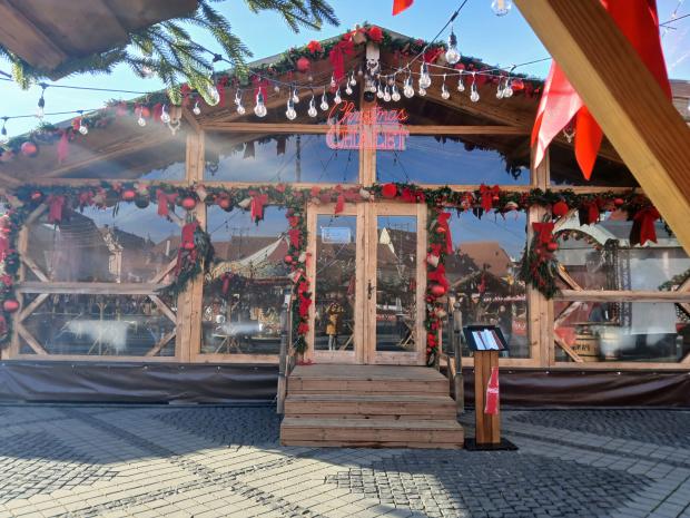 „Prețul acela de 25 lei este înăuntru. Avem în mijlocul pieței o cabană, un restaurant, care se numește Christmas Chalet și este o cană de vin fiert mare, adică mai mare decât ce se găsește la căsuțele din târg, la cei 25 lei, dar stai într-un loc încălzit, plăcut, servit la masă”, explică organizatorul.
