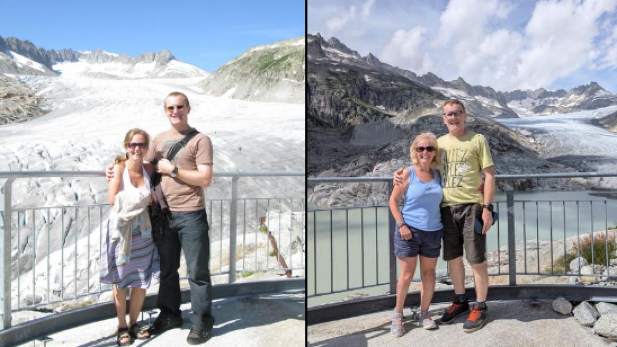 Un turist a postat fotografii cu el și cu soția sa în același loc din Alpii Elvețieni, la aproape 15 ani distanță, pentru a arăta cât de repede se topesc ghețarii. „Nu o să mint, m-au făcut să plâng”, a scris el într-o postare pe X, devenită virală, scrie The Guardian.