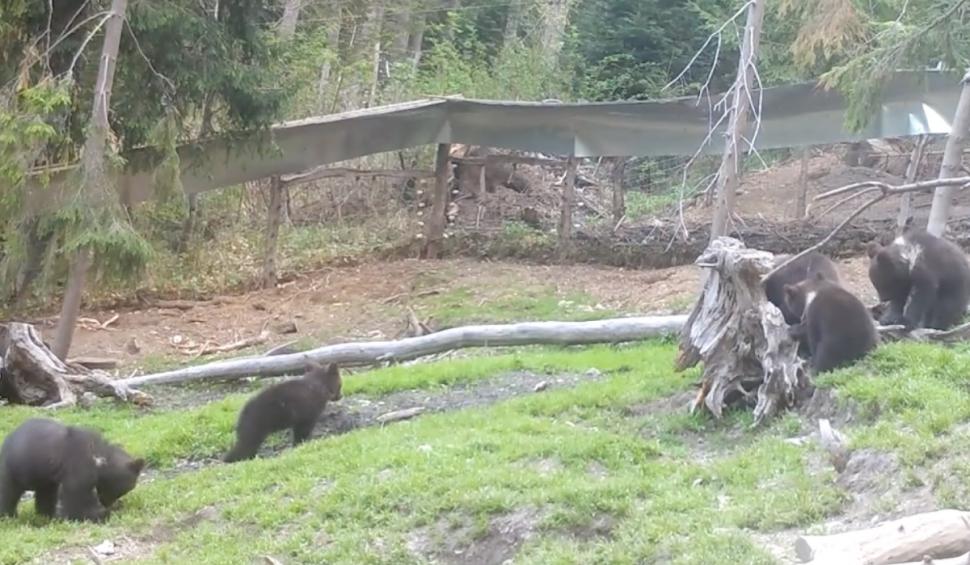 "Cei 8 pui pe care i-am luat în grijă în acest an se află în primul țarc din pădure. Toți se descurcă bine și cresc rapid. Deocamdată îi hrănim cu o formulă specială de lapte, de 3 ori pe zi, și beau aproximativ 30 de litri din ea", au scris cei de la Bear Again, pe Facebook.