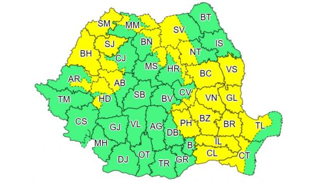 "În intervalul menționat, în zona Carpaților Orientali și a Munților Apuseni și local în Moldova, Dobrogea, Muntenia, Crișana, Maramureș și în nord-vestul Transilvaniei vor fi perioade cu instabilitate atmosferică accentuată, ce se va manifesta prin averse torențiale, descărcări electrice, vijelii și pe alocuri grindină.