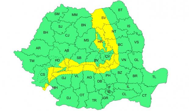 ANM a anunţat că de vineri, de la ora 10:00 şi până la ora 17:00 este în vigoare un cod galben de viscol, valabil pentru Carpații Meridionali și în cea mai mare parte a Carpaților Orientali.