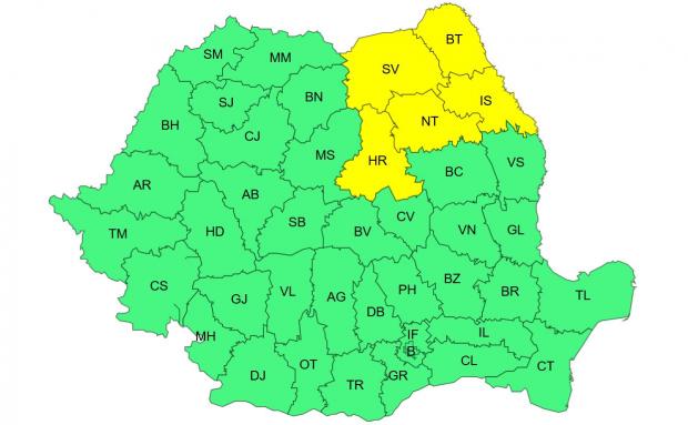 Potrivit meteorologilor, de vineri, 09 ianuarie, de la ora 20:00 şi până sâmbătă, 10 ianuarie, la ora 20:00 este cod galben de ger, iar zonele în care se vor înregistra temperaturi deosebit de scăzute sunt cele din nordul Moldovei și estul Transilvaniei.