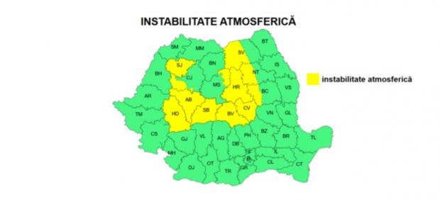Conform hărții ANM, sunt vizate următoarele județe: