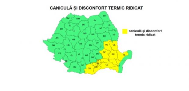 În intervalul menționat, în sudul, centrul și estul Munteniei, sudul Moldovei, precum și în partea continentală a Dobrogei se vor înregistra temperaturi maxime de 35…37 de grade Celsius. Disconfortul termic va fi accentuat, iar indicele temperatură-umezeală (ITU) va atinge pragul critic de 80 de unități.