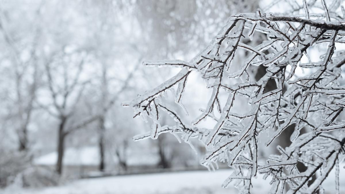 Copaci îngheţaţi şi zăpadă pe jos
