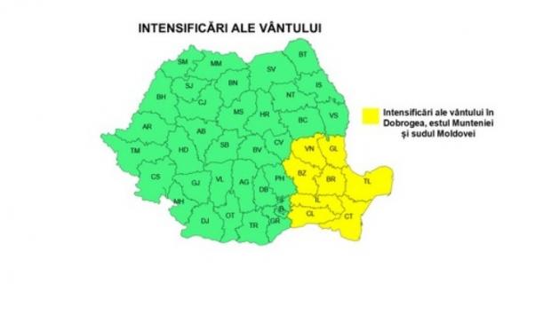 Potrivit meteorologilor, vântul va avea intensificări temporare pe parcursul zilei de joi (19 martie) în Muntenia, Dobrogea, sudul Moldovei și al Olteniei, iar vineri (20 martie) cu precădere în regiunile estice și sud-estice.