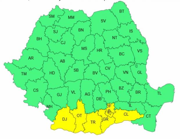 Zone afectate: județele Dolj, Olt, Teleorman, Giurgiu, Călărași, Ilfov și municipiul București