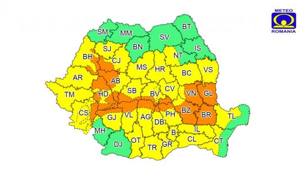 În zona Carpaţilor Meridionali şi a Munților Apuseni, precum și în sudul Moldovei și nord-estul Munteniei vor fi ploi abundente și se vor cumula cantități de apă ce vor depăși 40-60 l/mp.