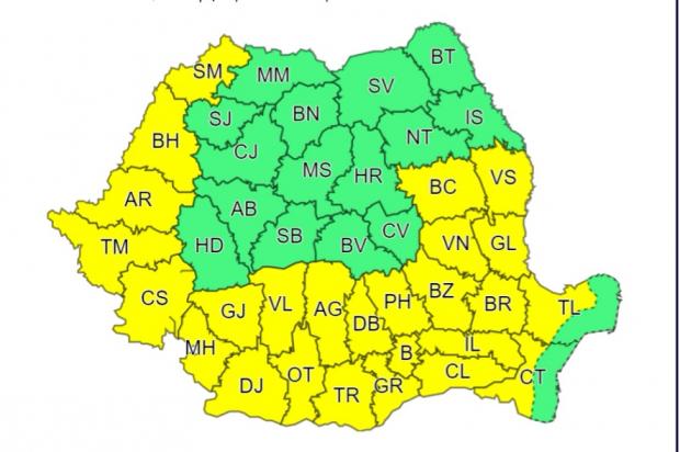 Avertizarea meteo ANM Cod galben este valabilă în pe tot parcursul zilei de 24 iulie.