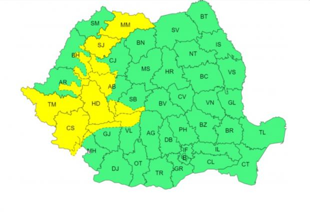 Avertizarea meteo ANM cod galben este valabilă astăzi, între orele 10:00 și 23:00.