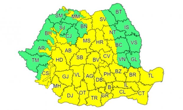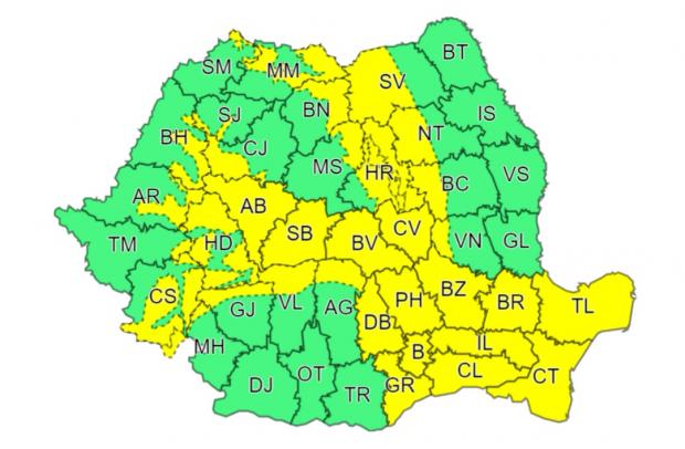 A doua avertizare meteo Cod galben este valabilă în intervalul 12 noiembrie, ora 08:00, 12 noiembrie, ora 18:00.
