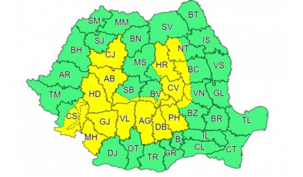 În intervalul menționat, local în zona de munte, în Oltenia, Muntenia și Transilvania, vor fi perioade cu instabilitate atmosferică accentuată ce se va manifesta prin averse torenţiale, frecvente descărcări electrice, intensificări ale vântului și pe alocuri vijelii şi grindină.