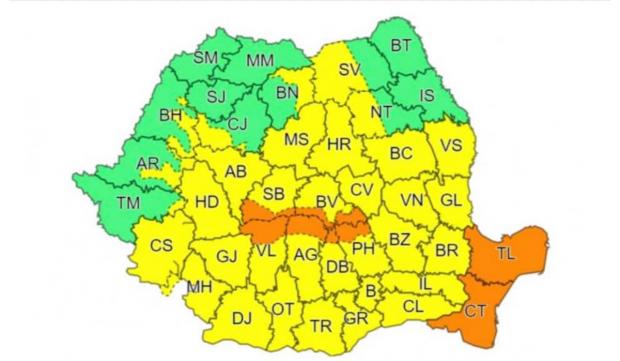 "În județele Tulcea, Constanța și în zona de munte a județelor Brașov, Sibiu, Vâlcea, Argeș, Dâmbovița și Prahova va ploua abundent și se vor înregistra cantități de apă ce vor depăși 40-50 l/mp și izolat peste 70 l/mp.