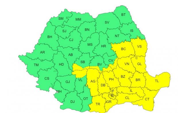În Muntenia, Dobrogea, sudul Moldovei, estul și sudul Transilvaniei vorbim de intensificări ale vântului, rafale de 50-70 kilometri pe oră și vorbim și de o posibilitate de a înregistra rafale de peste 80 de kilometri pe oră în estul Munteniei.