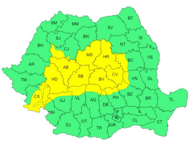 De asemenea, meteorologii au emis o atenționare cod galben pentru mai multe județe.