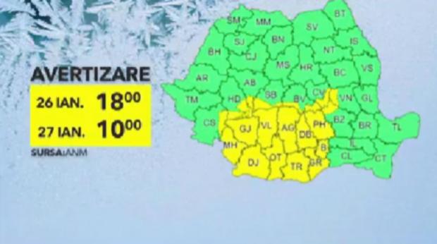 În județele Mehedinți, Gorj, Dolj, Vâlcea, Argeș, Dâmbovița și Prahova treptat vor predomina ninsorile, se va depune strat de zăpadă, iar în județele Olt, Teleorman, Giurgiu, Ilfov și municipiul București vor fi precipitații îndeosebi sub formă de ploaie și lapoviță și vorbim și de polei.