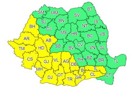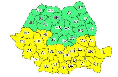 Prima avertizare cod galben intră în vigoare astăzi, la ora 15:00 și rămâne valabilă până mâine dimineață, la ora 06:00.