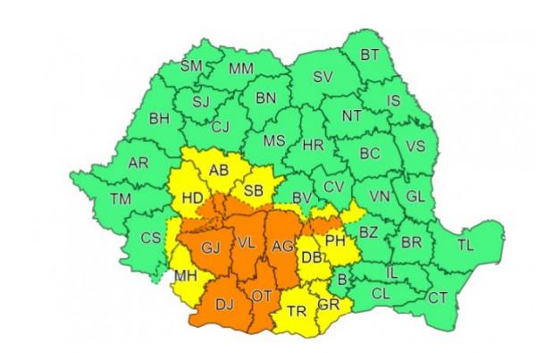 Potrivit avertizării cod galben, valabilă de miercuri, 10 august, ora 10:00, până joi, 11 august, ora 08:00, în Oltenia, în nordul și vestul Munteniei, în sud-vestul Transilvaniei, precum și în zona Carpaților Meridionali vor fi perioade cu instabilitate atmosferică accentuată.