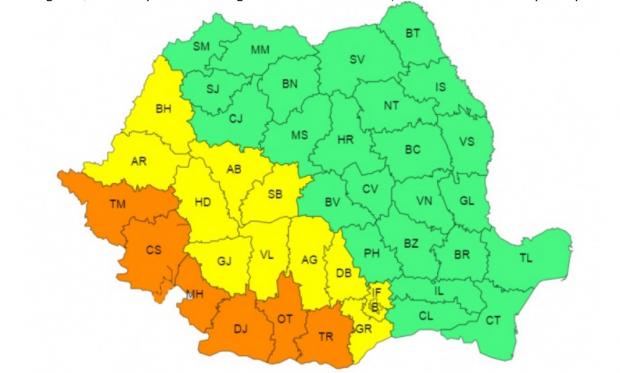Miercuri: Cod portocaliu și cod galben de caniculă