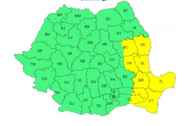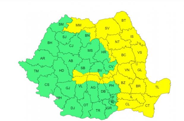 Administrația Națională de Meteorologie a emis avertizări cod galben de vreme rea pentru orele următoare, valabile în mai multe zone ale țării.