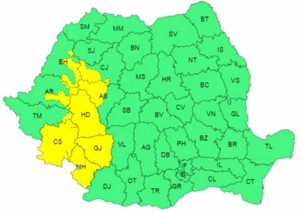 În intervalul menționat, în sudul Banatului, sud-vestul Transilvaniei, nord-vestul Olteniei, precum și în Carpații Occidentali și vestul Carpaților Meridionali vor fi averse însemnate cantitativ.